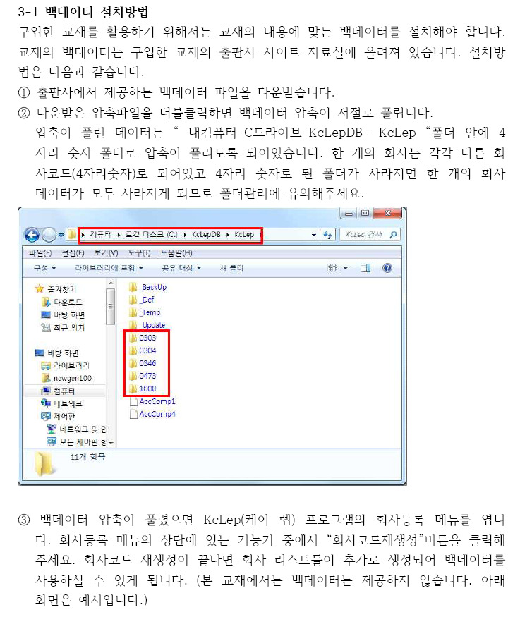 위 화면처럼 따라했는데요.. C드라이브 내 제대로 백데이터가 들어가 있는데, 케이렙프로그램 내에서 "회사코드재생성"버튼 누르면 완료화면이 뜨긴하는데 회사등록화면에 아무회사코드도 생성이 안되요...