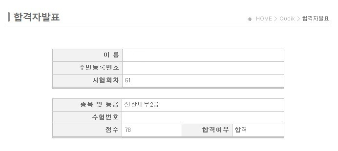 방금 합격자 발표 확인했는데 합격했네요! 시험 일주일 전 일이 생겨서 제대로 공부 못해서 떨어질꺼라 생각했는데 합격해서 좋네요. 급한대로 기출문제 풀고 이해안가는 문제들은 카페 게시판에 질문한게 합격 요인중 하나라고 생각합니다.