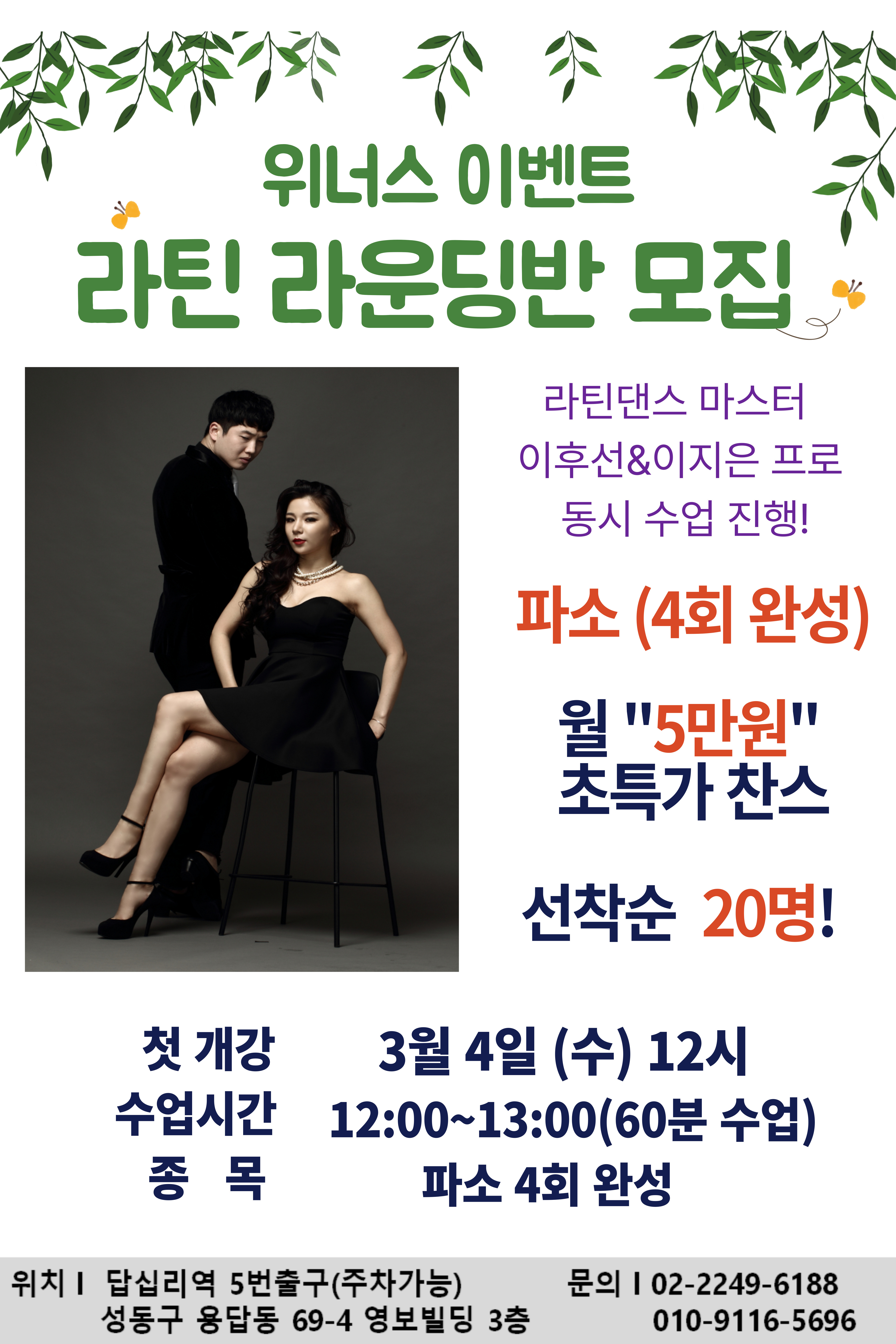 ★ 위너스 이벤트! 라틴 라운딩반 모집 ★ 작성자전영인(위너스)|작성시간26.02.14|조회수88 목록 댓글 0 글자크기 작게가 글자크기 크게가 다음검색 현재 게시글 추가 기능 열기 북마크 공유하기 신고 센터로 신고 댓글 댓글 0 댓글쓰기 답글쓰기 댓글 리스트