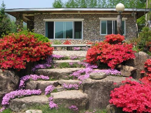 잔디밭 및 예쁜 정원 조성, 족구장, 야외 바베큐장, 캠프장 등이 3000평이나 되는 저희 다락산장에 준비되어 있습니다.