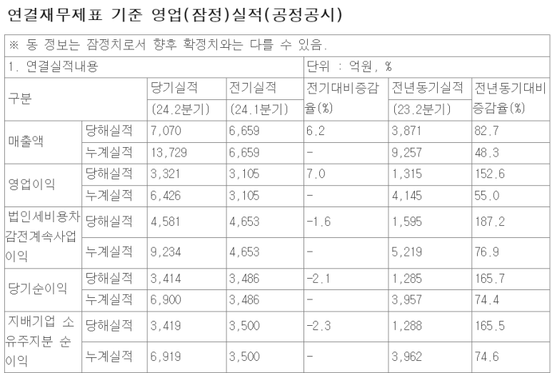 그리고 같은 기간 매출액과 순이익은 7070억원, 3414억원으로 각각 82.7%, 165.7% 늘어나며 어닝서프라이즈를 기록했습니다.