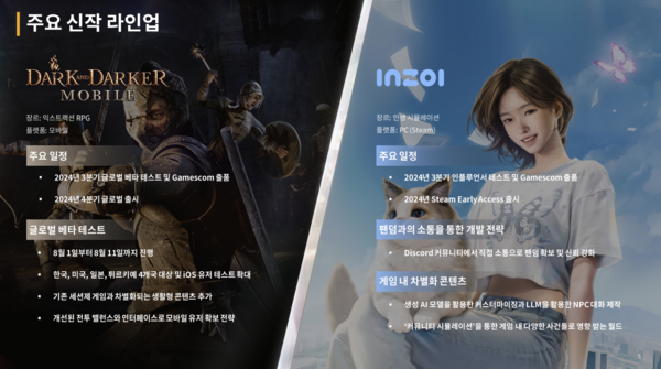 한편 크래프톤은 8월 21일 시작되는 게임스컴에서 ‘인조이(인생시뮬레이션)’, ‘다크앤다커모바일’을 공개할 예정입니다.
