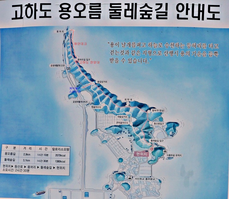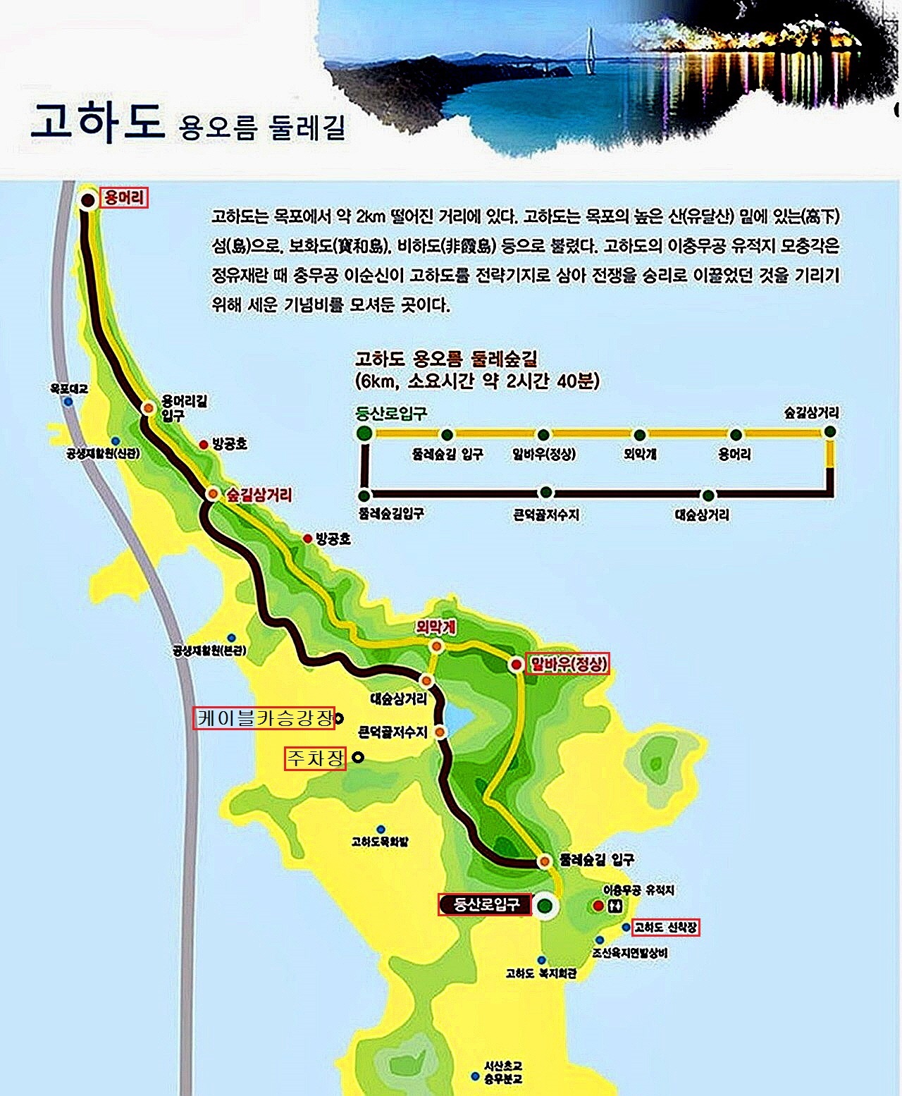 산행코스 : [ 고하도 스테이션 주차장~고하도 스테이션~150세 힐링건강계단~고하도 전망대 삼거리~고하도 전망대~해안 데크길~이순신 동상 포토존~해안 데크길~용머리~고하도 전망대~고하도 스테이션 주차장 ] (6km)