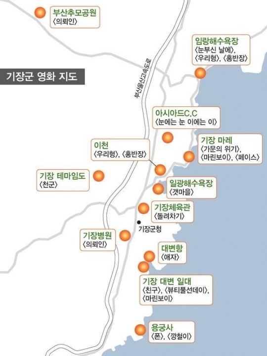 어촌마을을 가로지르는 기찻길, 햇볕에 내말려지고 있는 오징어와 멸치 냄새 그리고 동해바다의 힘찬 파도소리가 들리는 기장군은 고층빌딩이 빼곡히 솟은 부산이라는 도시에서 한 걸음 물러나 있다. 물론 정관신도시와 부산프리미엄아울렛, 동부산관광단지 같은 새로운 소비 형태의 유입으로 문화적 지류가 변하고는 있지만 아직까지 기장은 아날로그적 감성을 더 많이 느낄 수 있는 장소이다. 이에 기장은 부산 출신 감독뿐 아니라 다른 여러 감독들이 찾는 영화 촬영지가 되었다. 또한 관광객들은 영화와 함께 호흡하고 추억을 더듬기 위해서 영화 속에 등장하는 기장의 풍경을 찾아 짧지만 황홀한 여행을 떠나기도 한다.