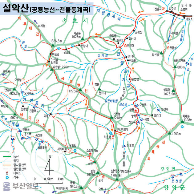 강원특별자치도 속초시 설악동 방면의 설악산에 있는 폭포.