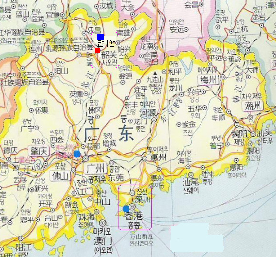 인천~꽝쪼우(廣州)~소관~단샤산(인화:仁化방향)