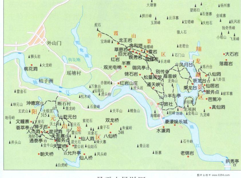 장라오펑(長老峰), 양위엔쓰(陽元石), 샤오쓰(韶石), 진장창량(錦江長廊) 등이 그 곳이다.