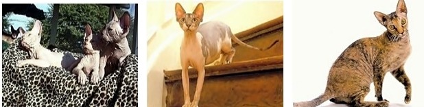 스웨이드 같은 짧은 털이 나 있는 우리에게 잘 알려진 스핑크스와 러시아에서 새로 발생한 피터볼드