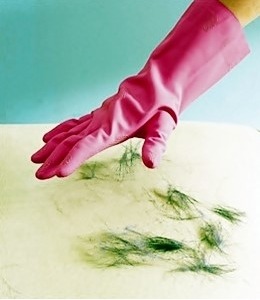 고무 장갑을 끼고 바닥이나 소파, 카펫, 이불 위에 달라 붙어 있는 털들을 쓸어 보면, 의외로 털들이