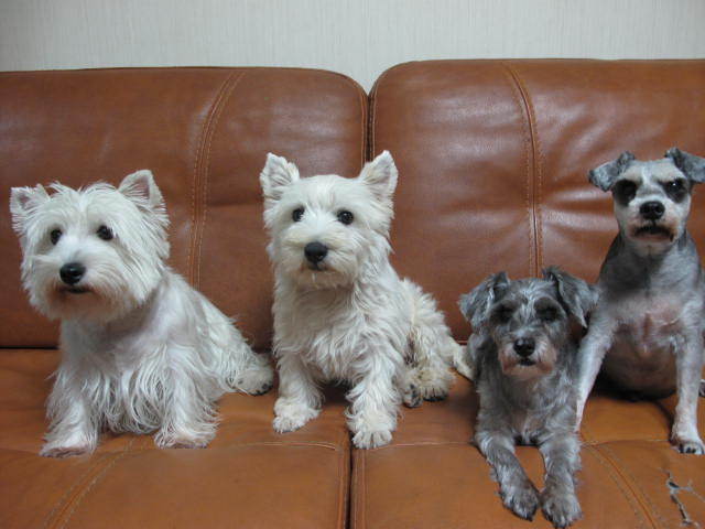 좌측부터.. 해피, 재롱이(해피의 딸), 딸램(생후 6개월), 핑구(재롱이의 아들)