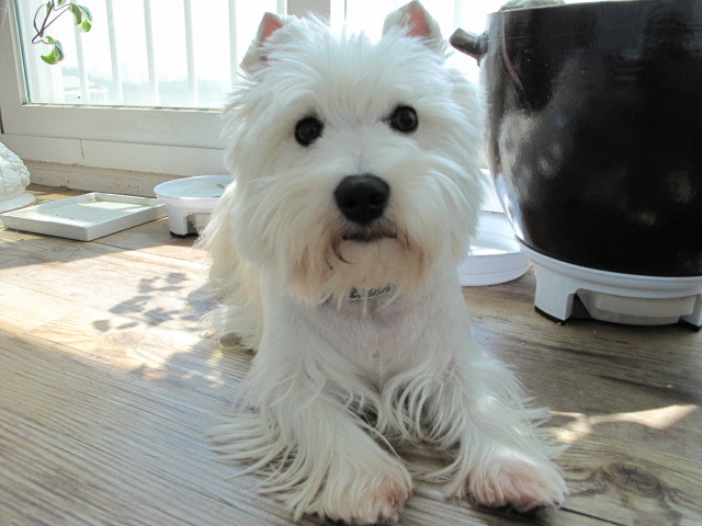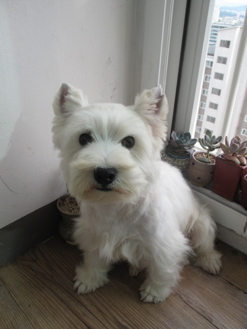 이 아이의 이름은 피치입니다.. 종은 웨스트 하이랜드 화이트테리어...일명 웨스티 라고도 합니다..