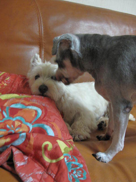 나는야 천상천하 유아독존....순한 푸키.. 형아에게 궁뎅을 다 내어주고 있네요^^