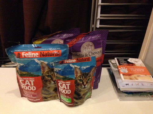 오랜 시간 집을 비워두어 생식 급여가 용이하지 않을 때에는 동결 건조 생식이나 캔을 급여하기도 합니다.