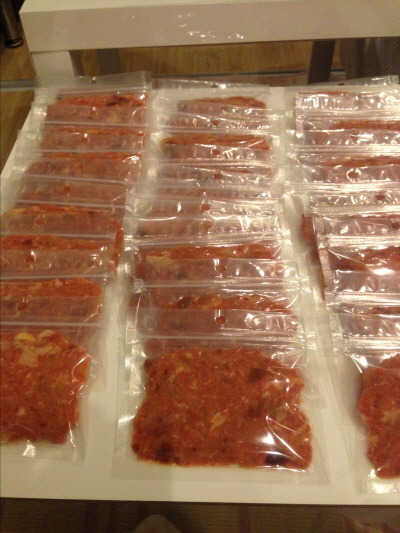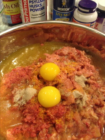 여기서 본밀을 20g으로 줄이시면 뼈를 10~15% 정도 넣는 생식 레시피에도 적용하실 수 있습니다.