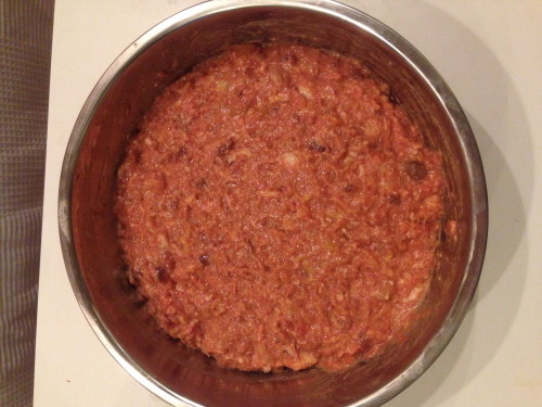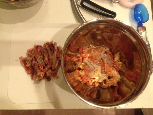 저는 살코기는 믹서기에 갈거나 칼로 일일이 먹기 좋은 크기로 자릅니다.