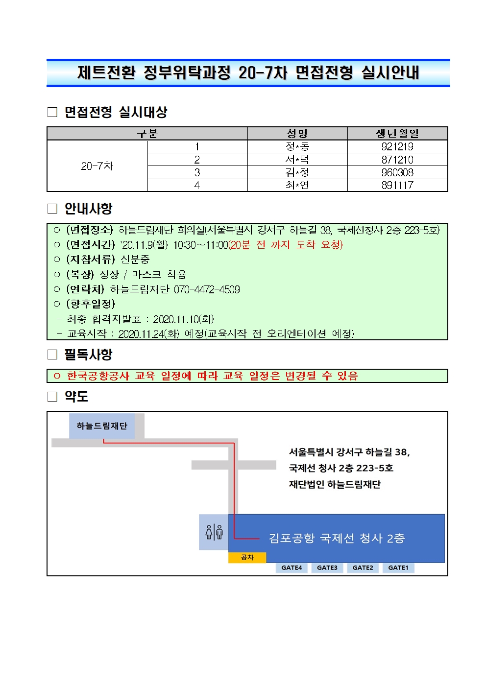 20-7차 제트전환 정부위탁과정 면접전형 실시 안내 작성자재단법인 하늘드림재단|작성시간20.11.05|조회수194 목록 댓글 0 글자크기 작게가 글자크기 크게가 다음검색 현재 게시글 추가 기능 열기 북마크 공유하기 신고 센터로 신고 댓글 댓글 0 댓글쓰기 답글쓰기 댓글 리스트