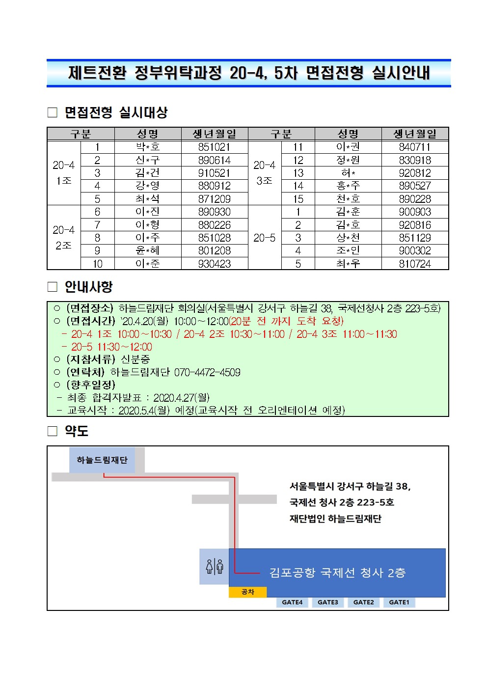 20-5차 제트전환 정부위탁과정 인성검사 결과 및 20-4, 5차 면접전형 안내 작성자재단법인 하늘드림재단|작성시간20.04.16|조회수213 목록 댓글 0 글자크기 작게가 글자크기 크게가 다음검색 현재 게시글 추가 기능 열기 북마크 공유하기 신고 센터로 신고 댓글 댓글 0 댓글쓰기 답글쓰기 댓글 리스트