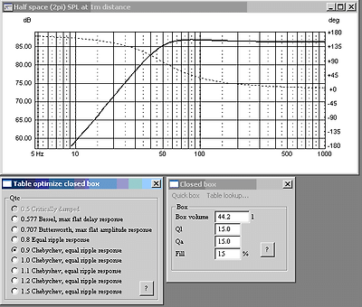 The 38 litres cabinet with the vent closed will provide an approx. 0.95 Chebychev tuning.