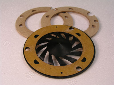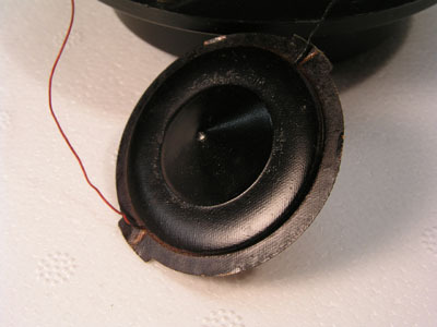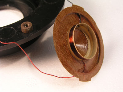 Above the HF1300 disassembled. The diaphragm is some resin impregnated fabric material with a very rigid suspension. The suspension is very wide and a similar feature is seen on modern tweeters by Vifa and SEAS.
