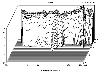 CSD, cumulative spectral decay. The midrange is an example to follow in terms of lack of resonances. The "shoulder" at 2.5-3 kHz is derived from the HF1300 and something is going on around 13 kHz too where the HF1300 crosses over to the Coles supertweeter. |