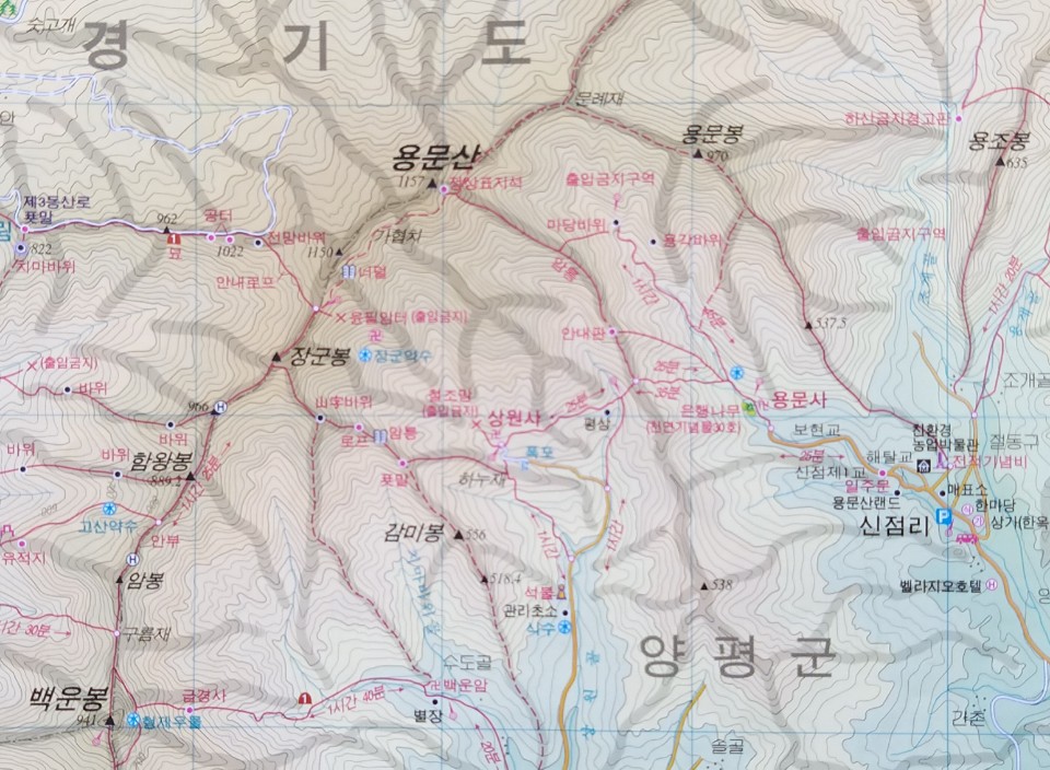 3.산행 코스 ; 연안 삼거리~상원사~장군봉~용문산~용문사