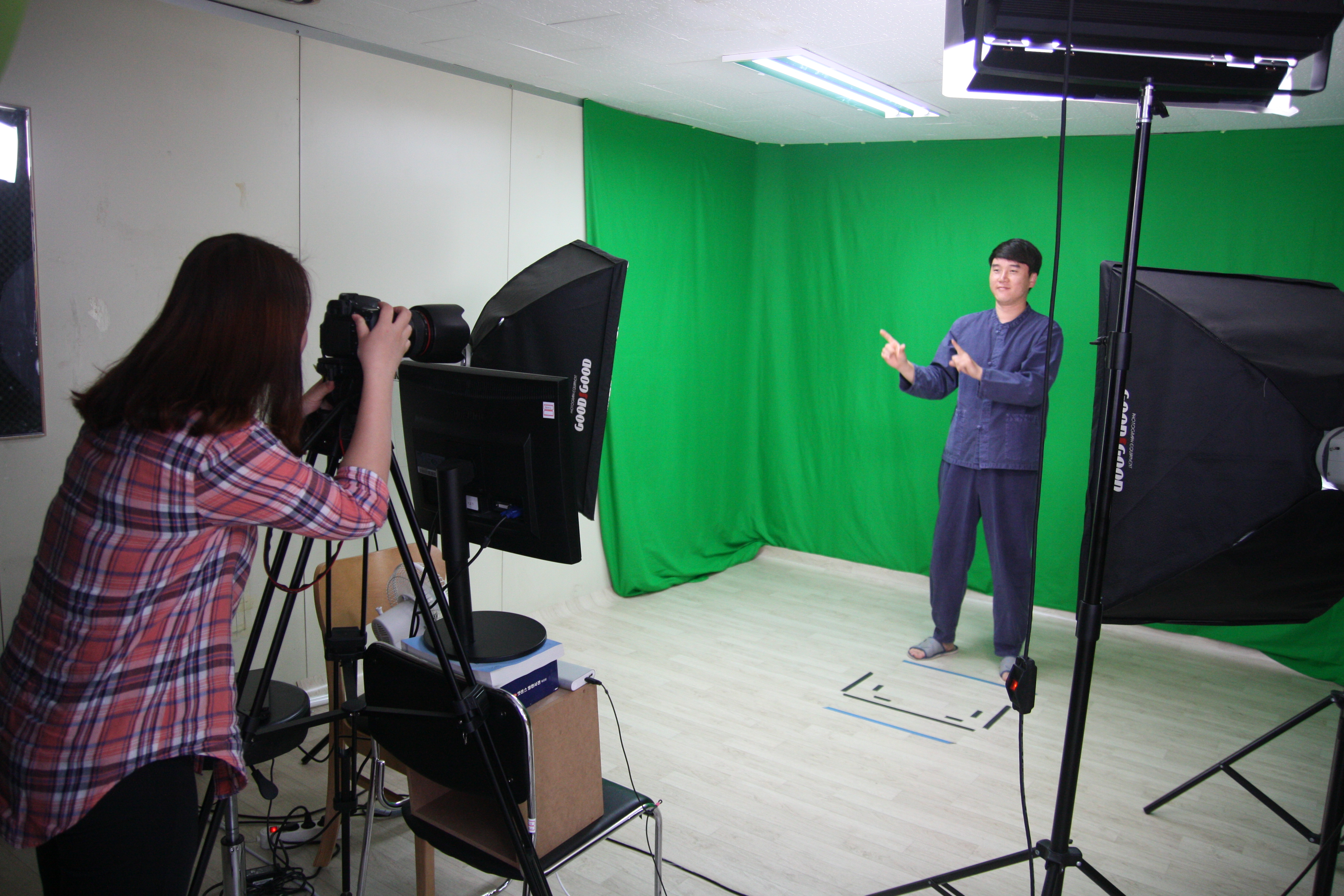 수화를 제1언어로 사용하여 농인들이 활자로 된 정보와 지식을 보다 쉽게 이해할 수 있도록 한 것인데요. 도서의 내용을 수화로 번역하여 이야기하는 것을 촬영하고 편집합니다.