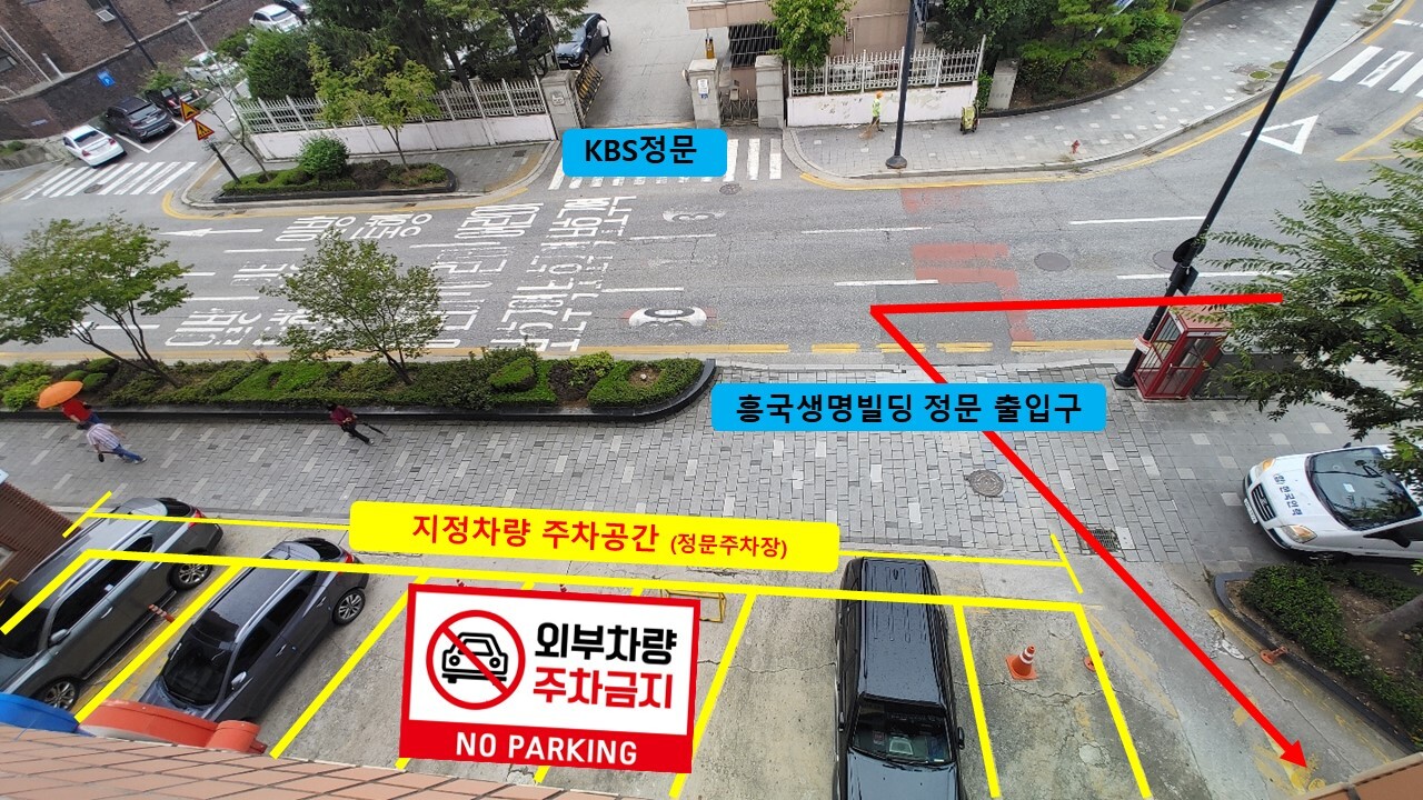 * 정문주차장은 지정차량 주차공간으로 외부인 주차를 금하오니 이용에 참고해주시기 바랍니다.