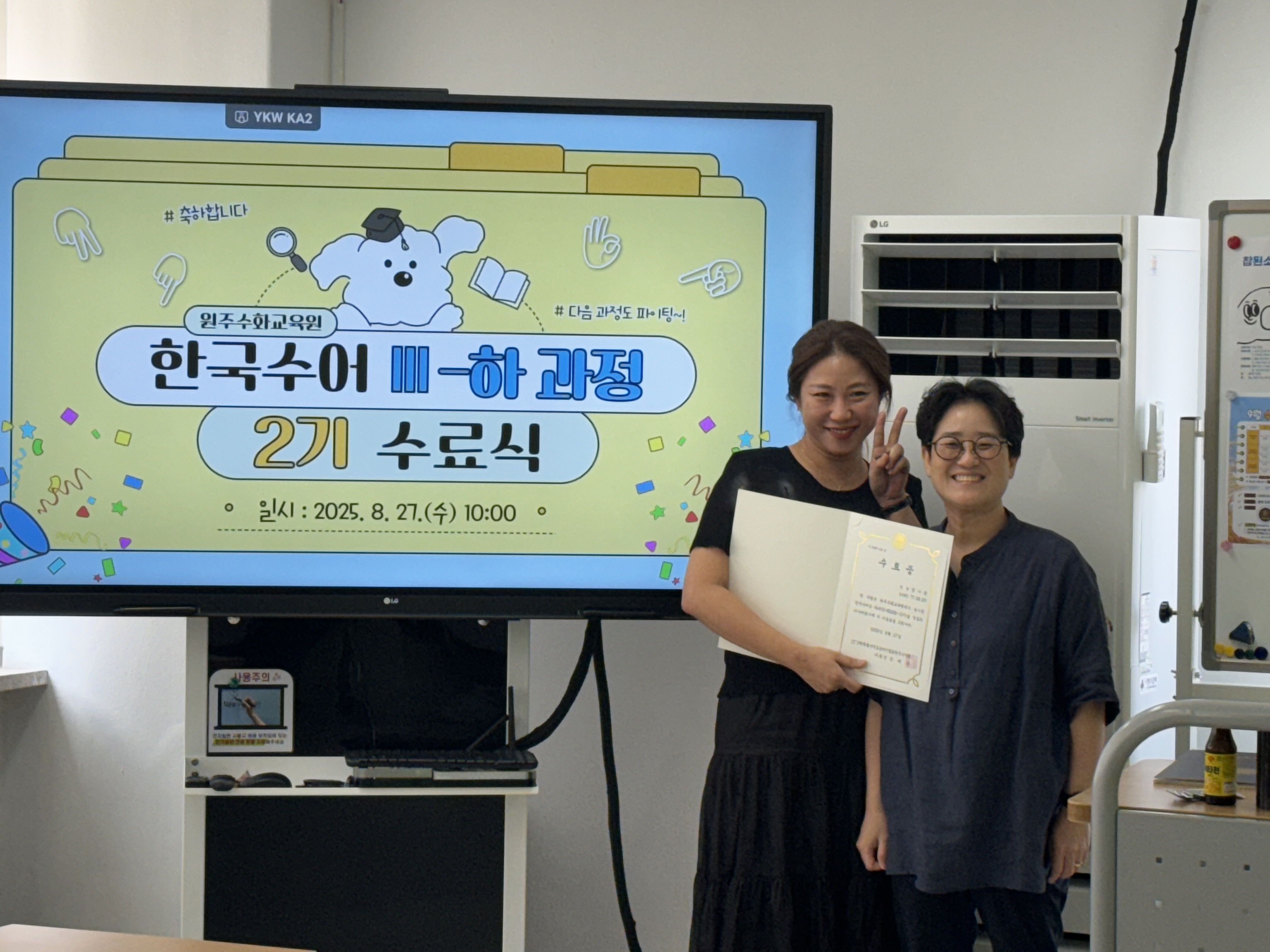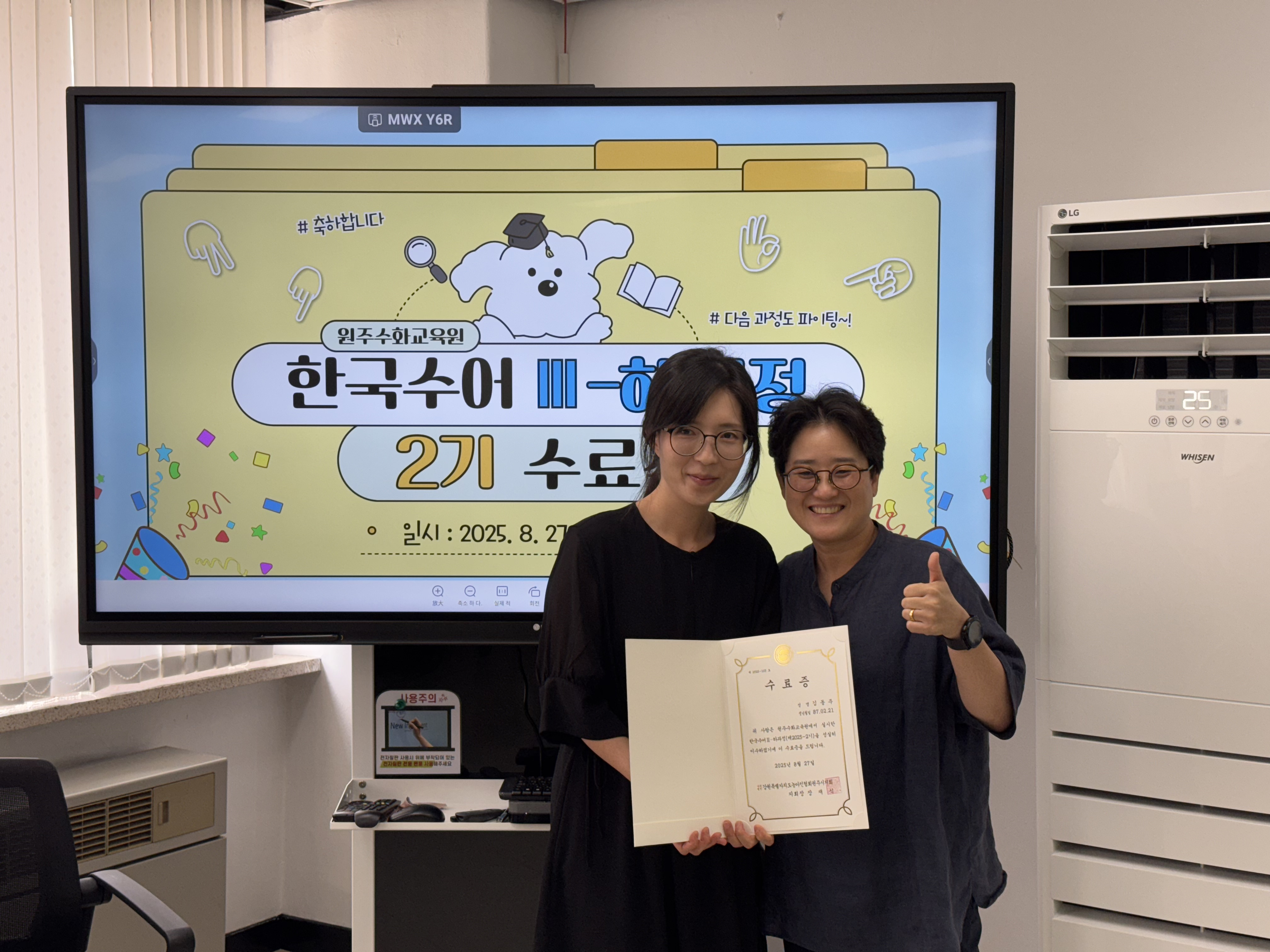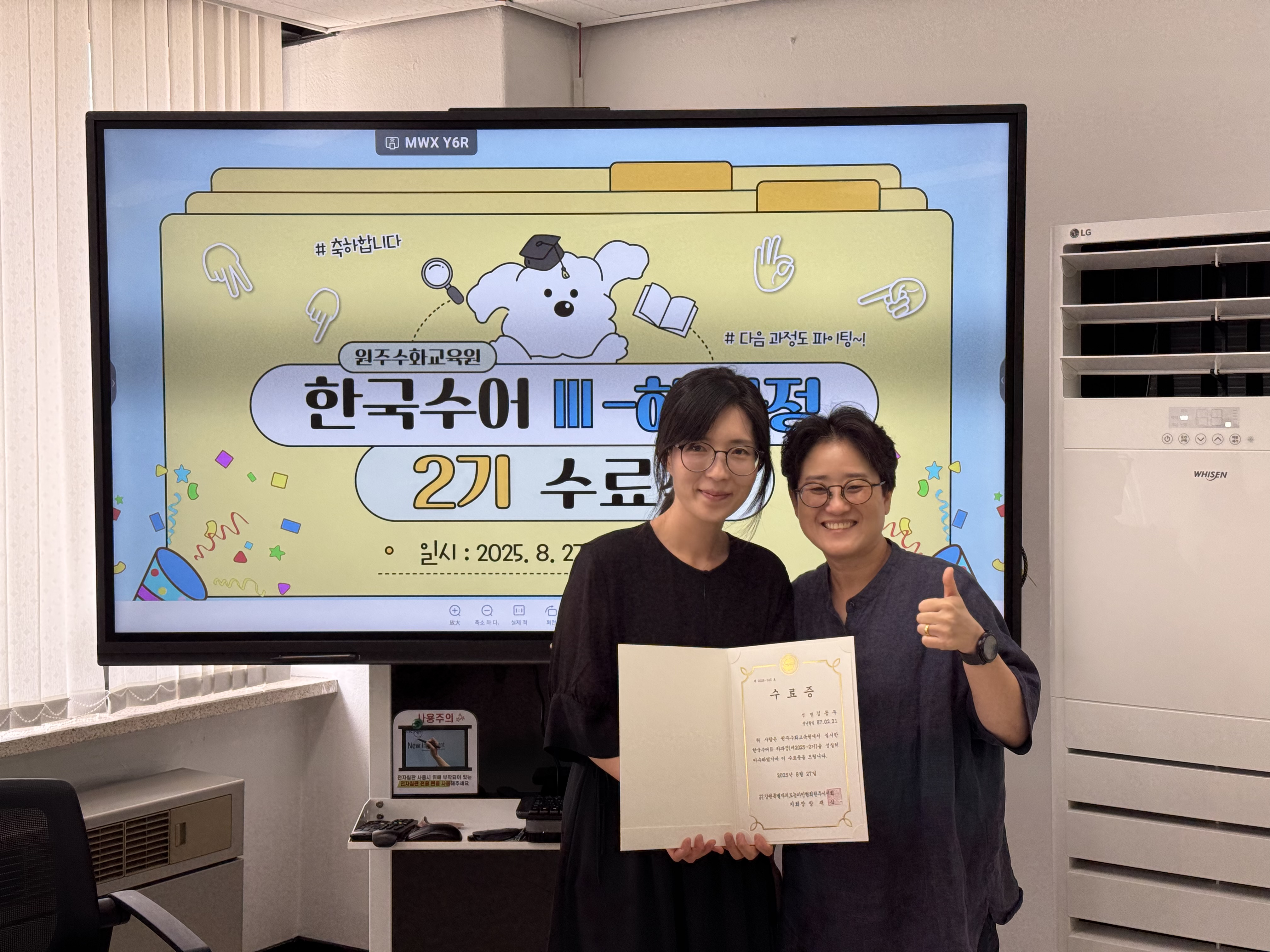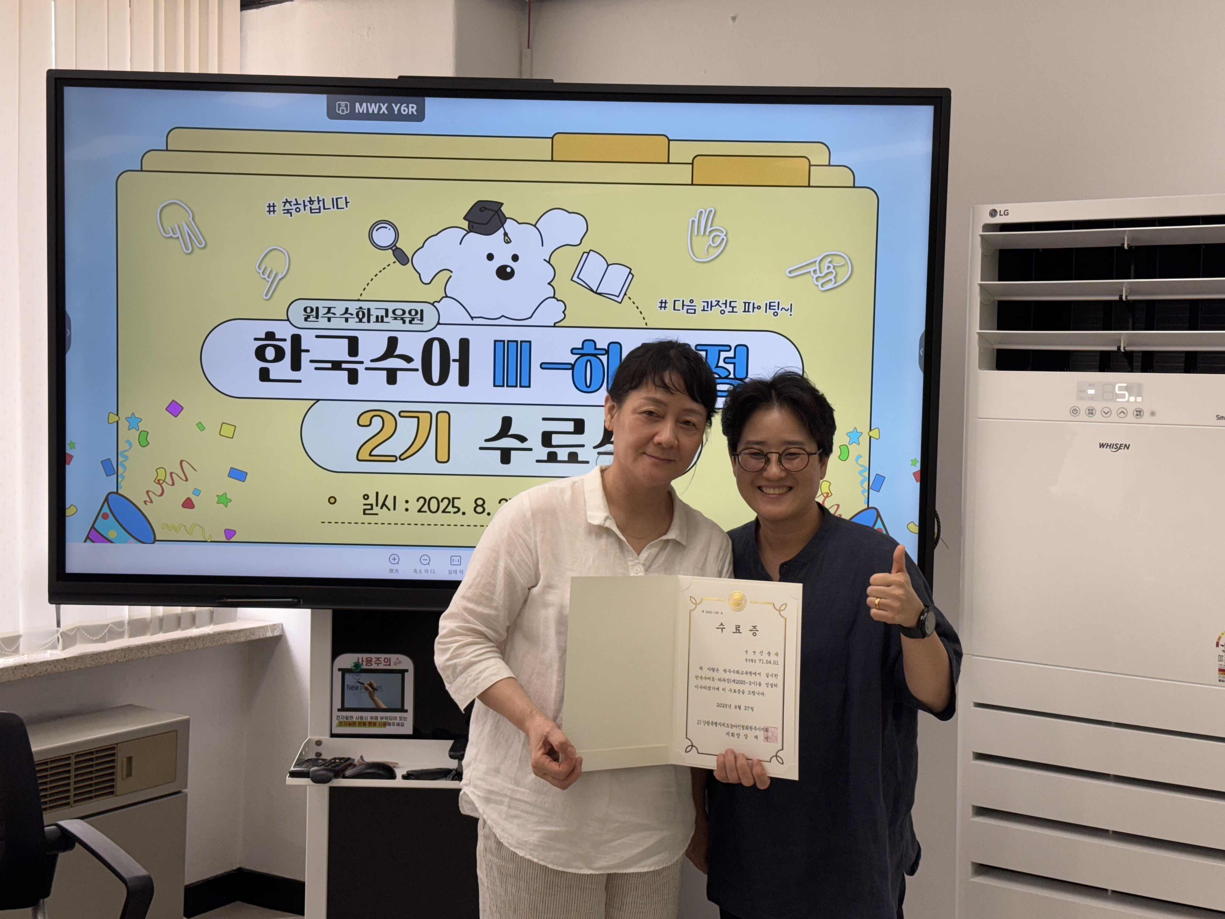 한국수어Ⅲ-하과정(제2025-2기) 수료식 작성자원주농아인협회|작성시간25.08.27|조회수110 목록 댓글 0 글자크기 작게가 글자크기 크게가 다음검색 현재 게시글 추가 기능 열기 북마크 신고 센터로 신고 댓글 댓글 0 댓글쓰기 답글쓰기 댓글 리스트