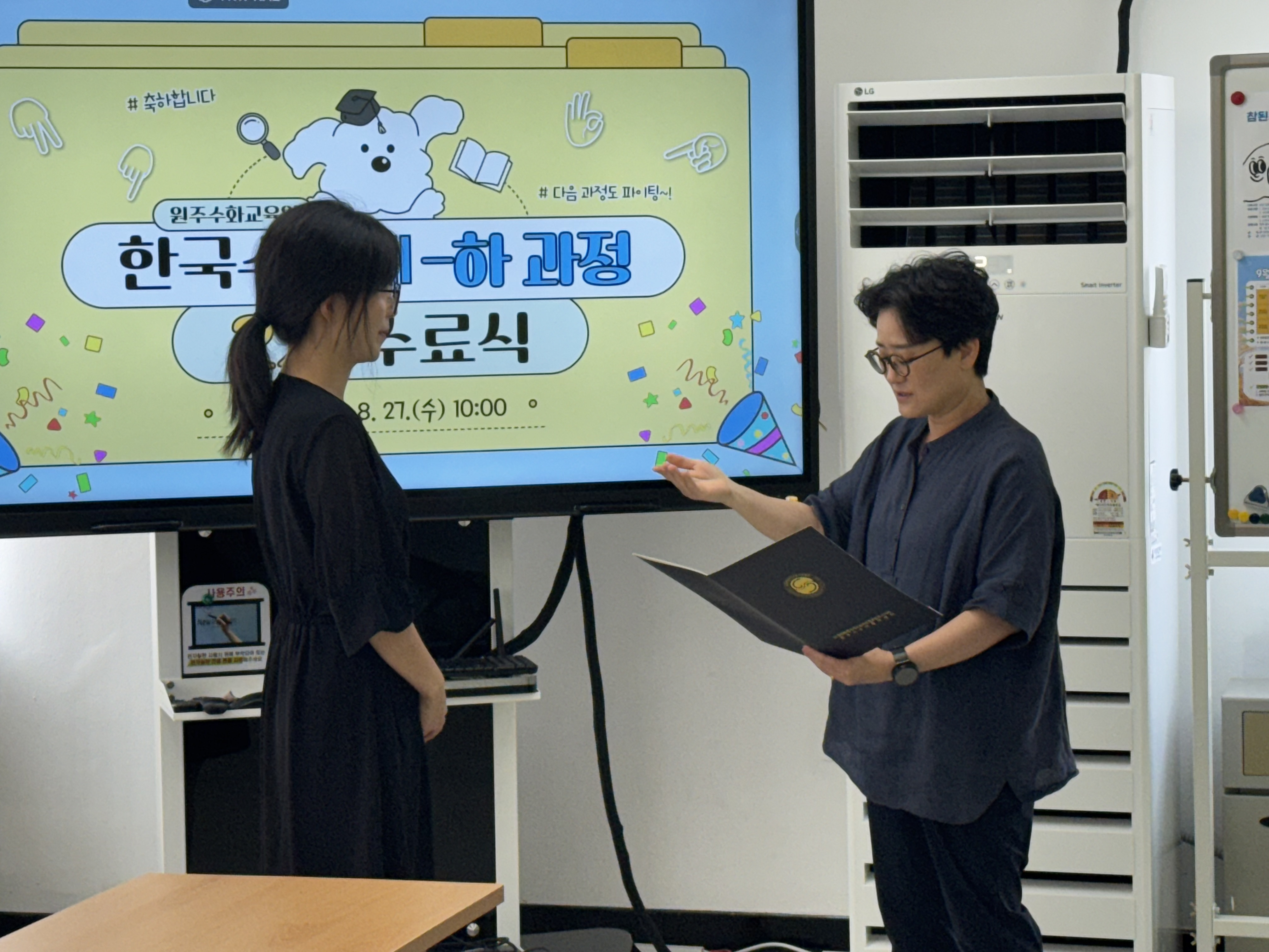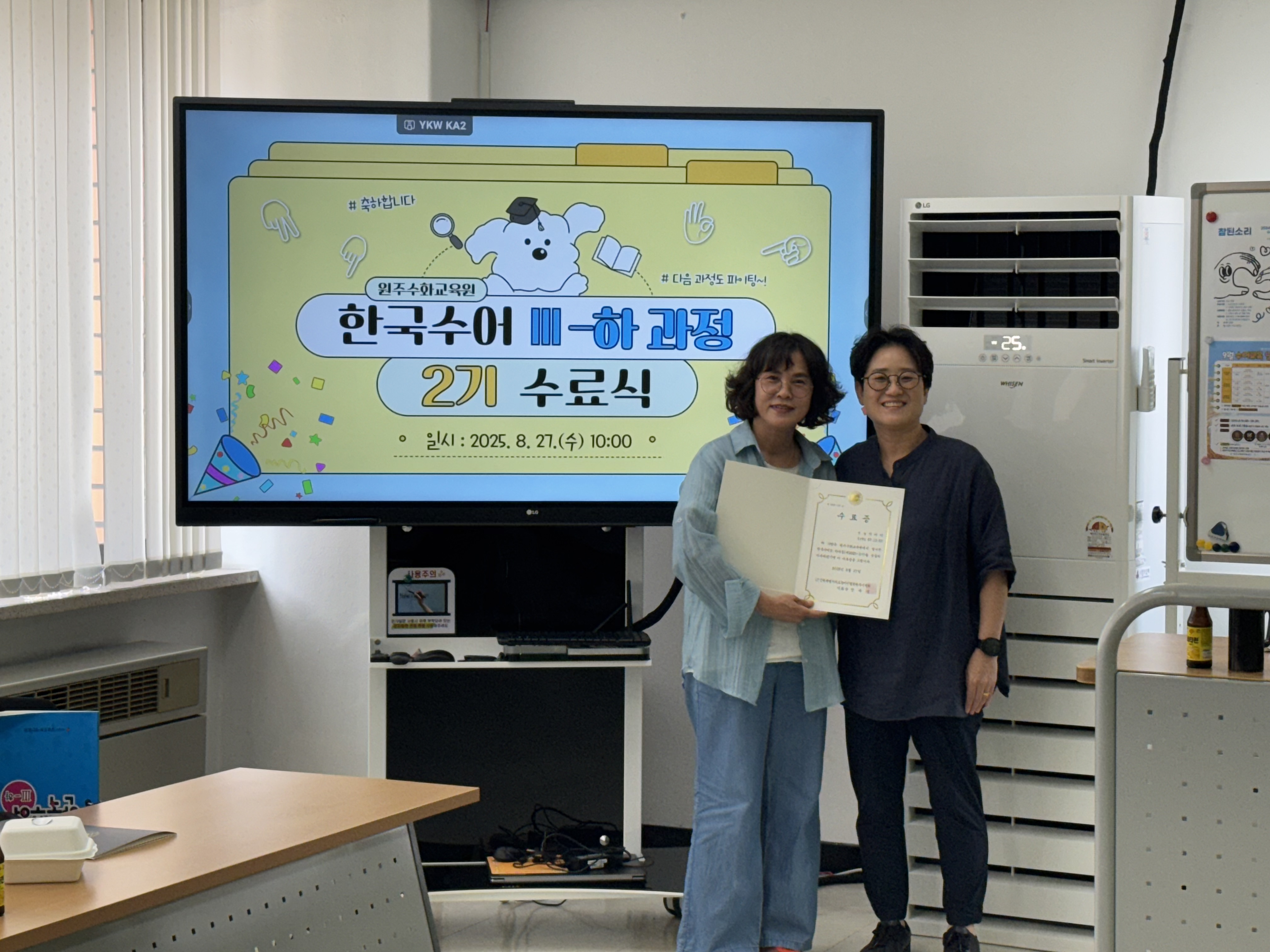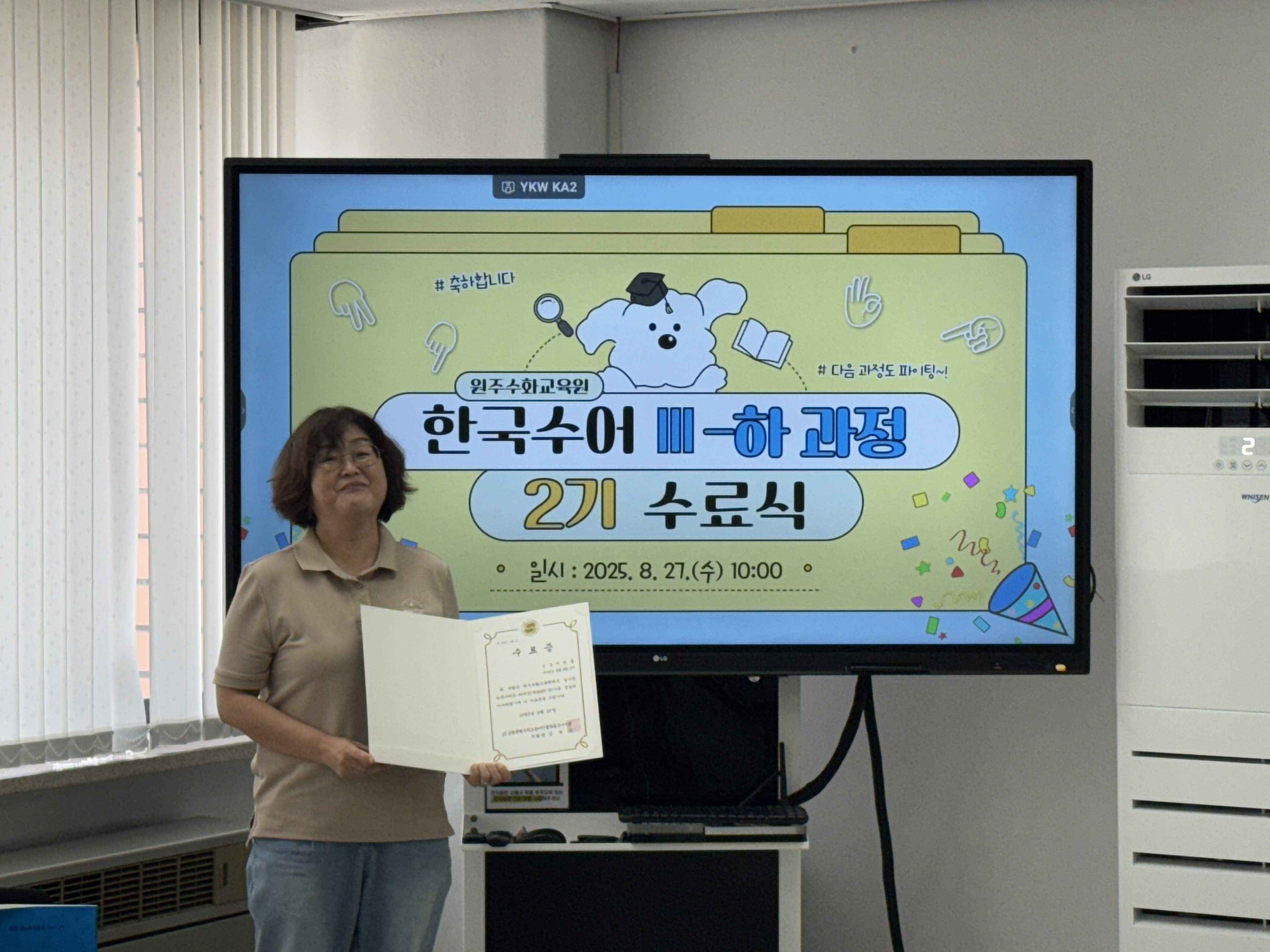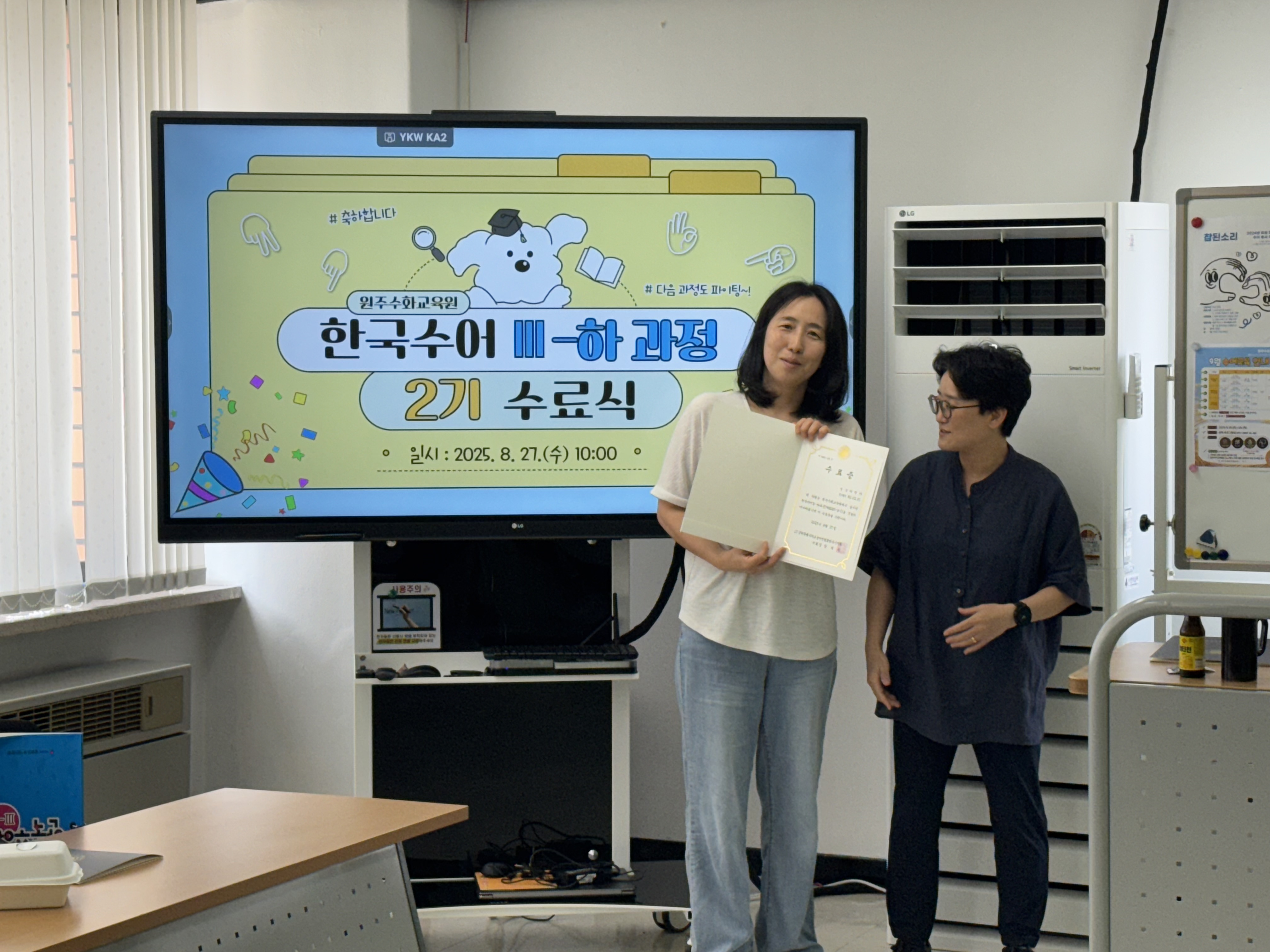 한국수어Ⅲ-하과정(제2025-2기) 수료식 작성자원주농아인협회|작성시간25.08.27|조회수110 목록 댓글 0 글자크기 작게가 글자크기 크게가 다음검색 현재 게시글 추가 기능 열기 북마크 신고 센터로 신고 댓글 댓글 0 댓글쓰기 답글쓰기 댓글 리스트