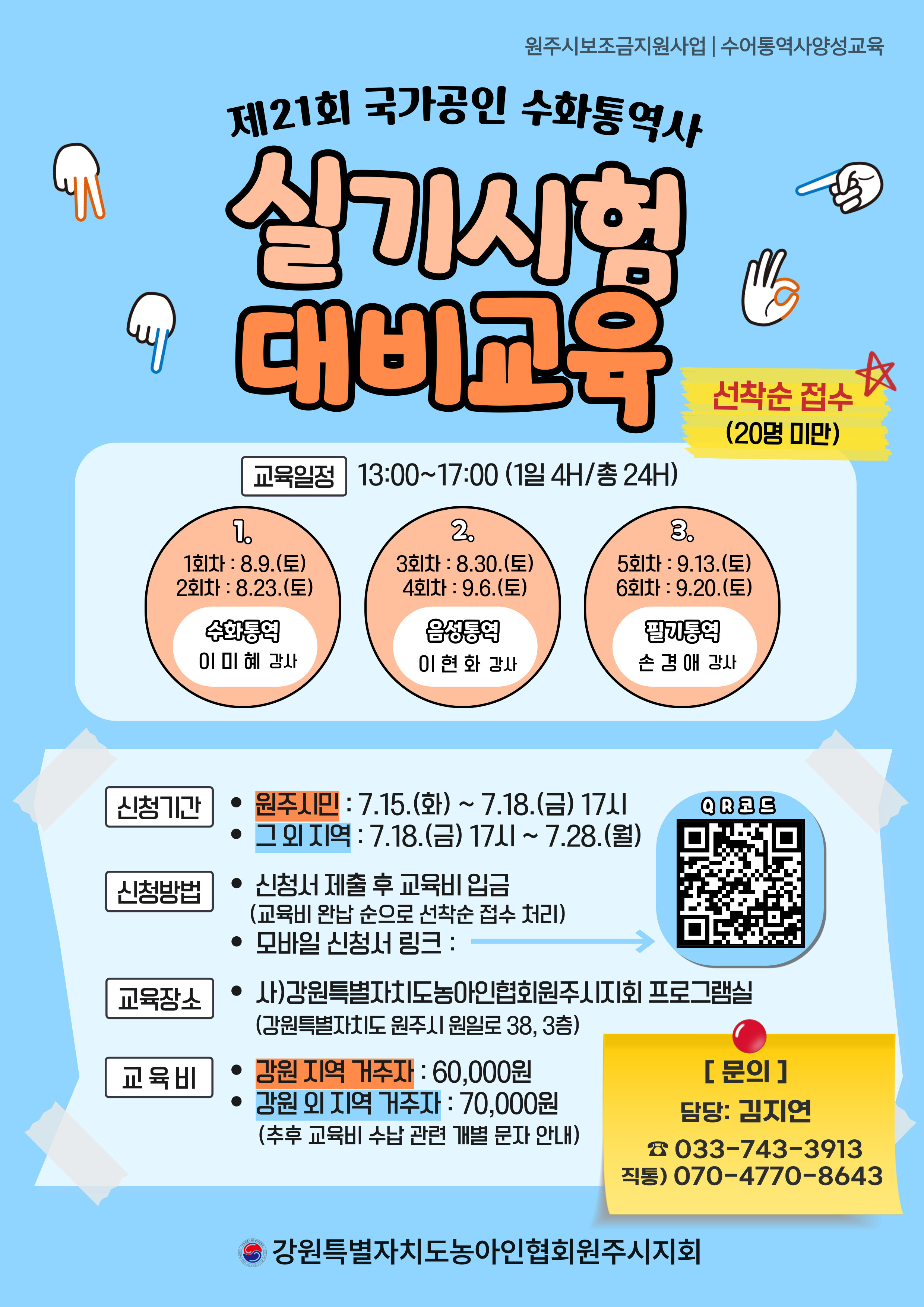 <제21회 국가공인 수화통역사 실기시험 대비교육>을 시작합니다.