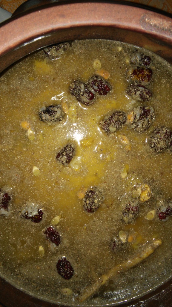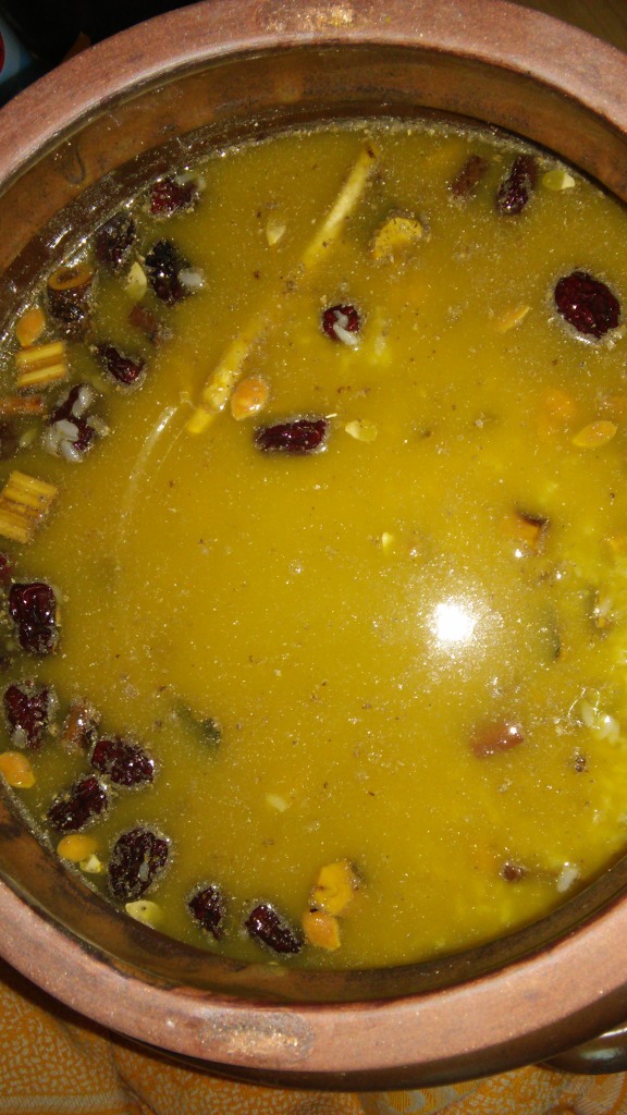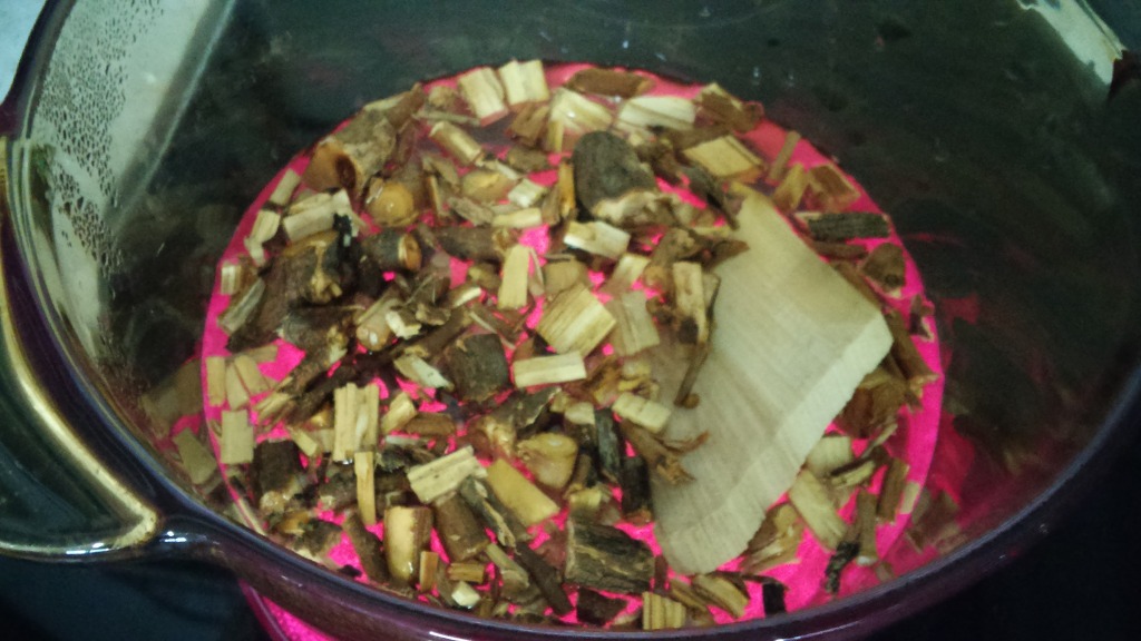 삼계탕용 약재(황귀, 당귀, 엄나무...) 물에 달여서