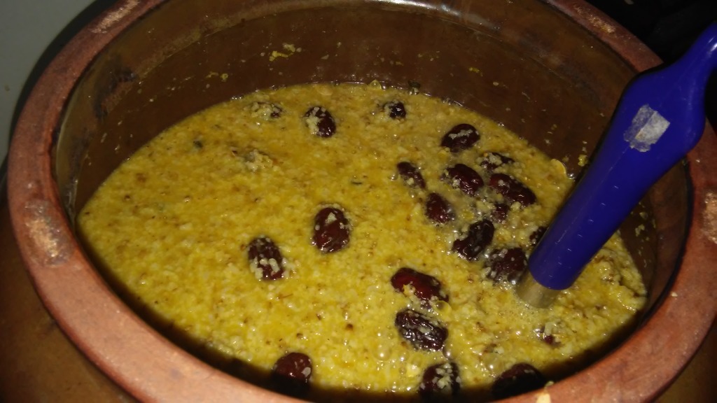 16일 오후 4시 술밥이 물을 다 흡수하여 뻑뻑합니다.