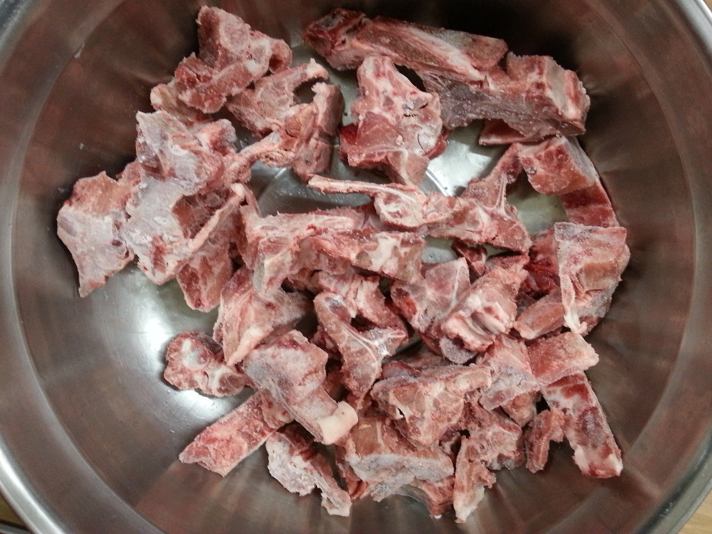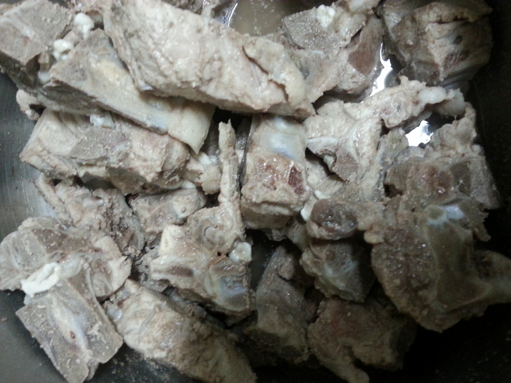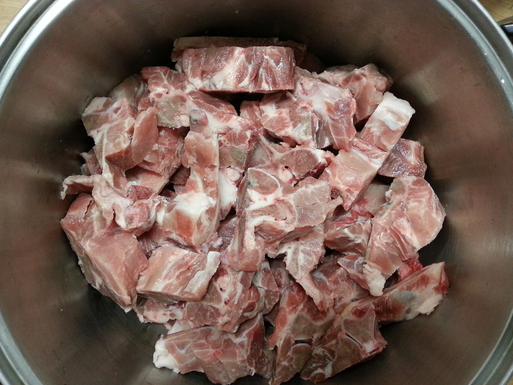 돼지고기 등뼈를 씻은후 우선 물에 담궈