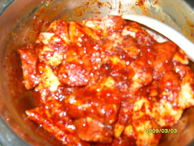돼지고기는 진간장, 매실효소,고추가루,후추,다진마늘넣고