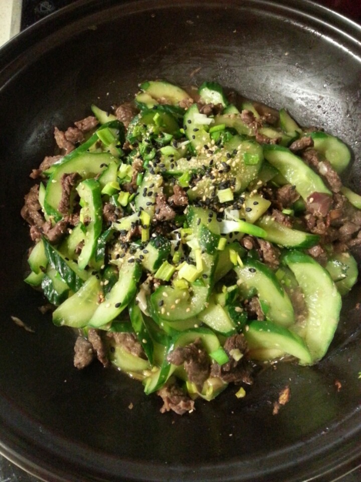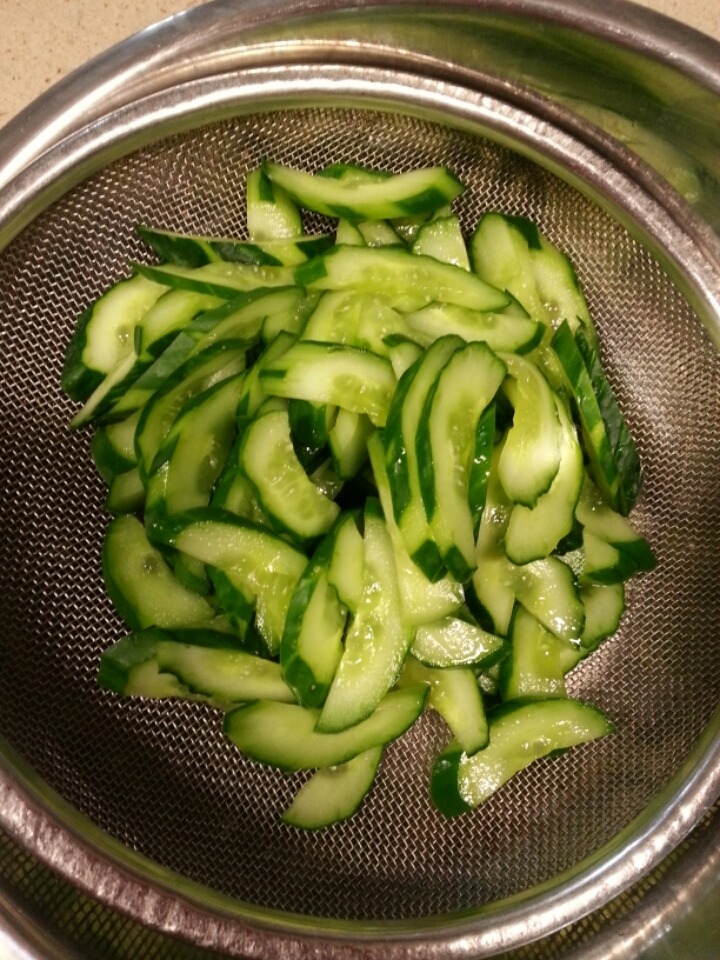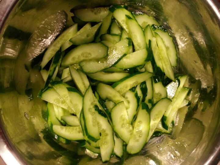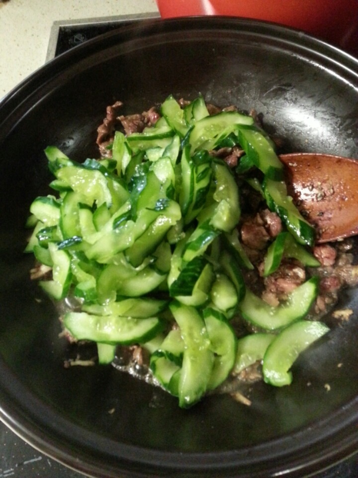 기름 살짝 두르고 오이랑 같이 볶습니다.