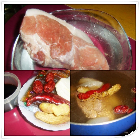 냄비에 넉넉히 물넣고 술,마른고추,통마늘,생강,양파반개,대추4개,양파즙