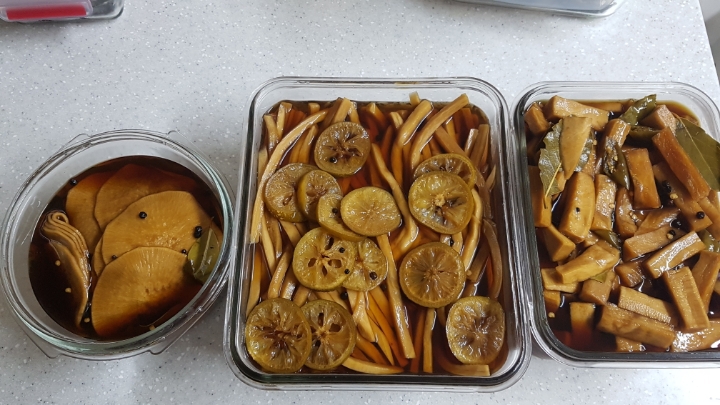 갑자기 왜무가 생겼어요. 단무지 무요~ 특별하게 연구하는 무였다는데 무가 물이 많고 연해서 깍두기 담으니까 쪼글쪼글 푸석 하기까지 해서 장아찌 담았어요.