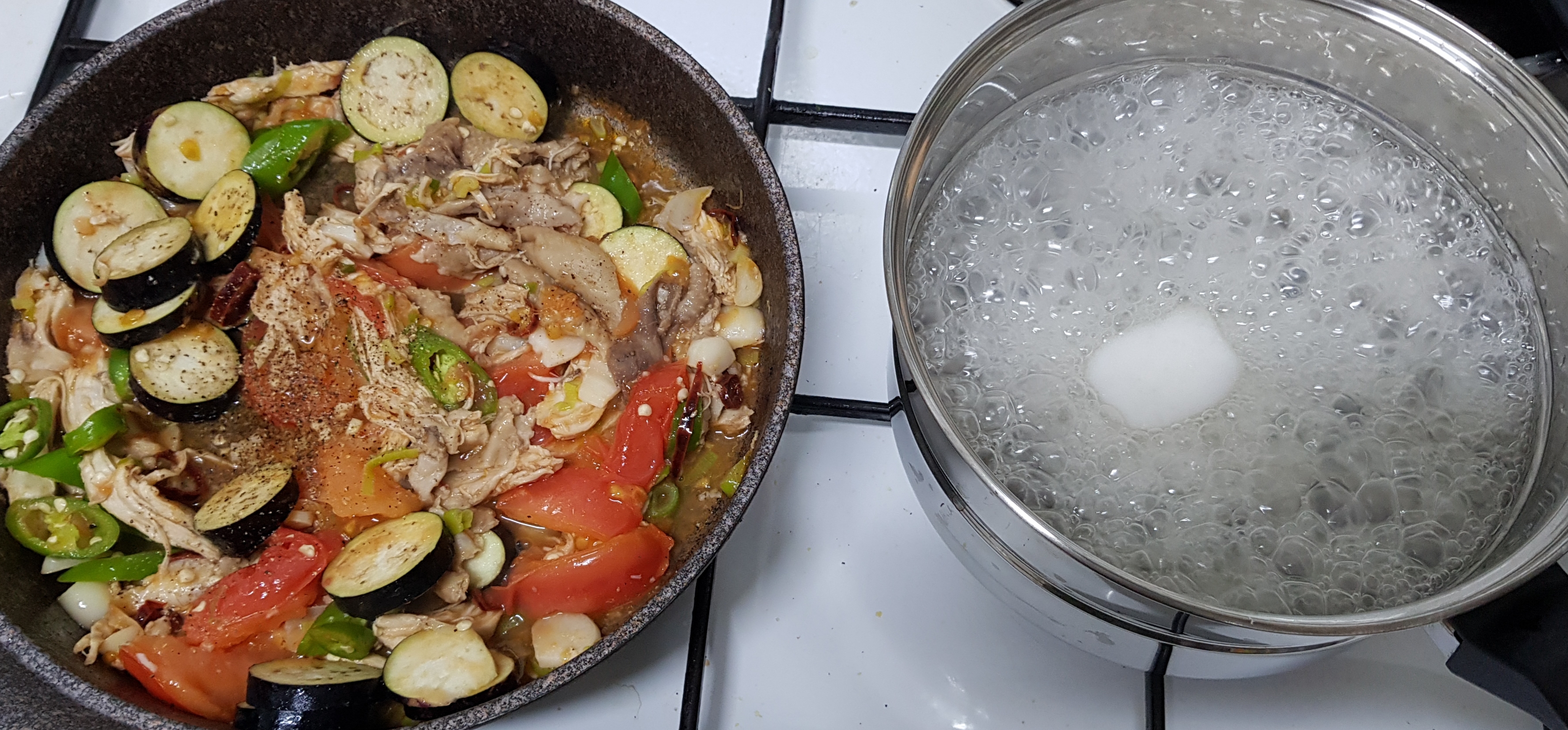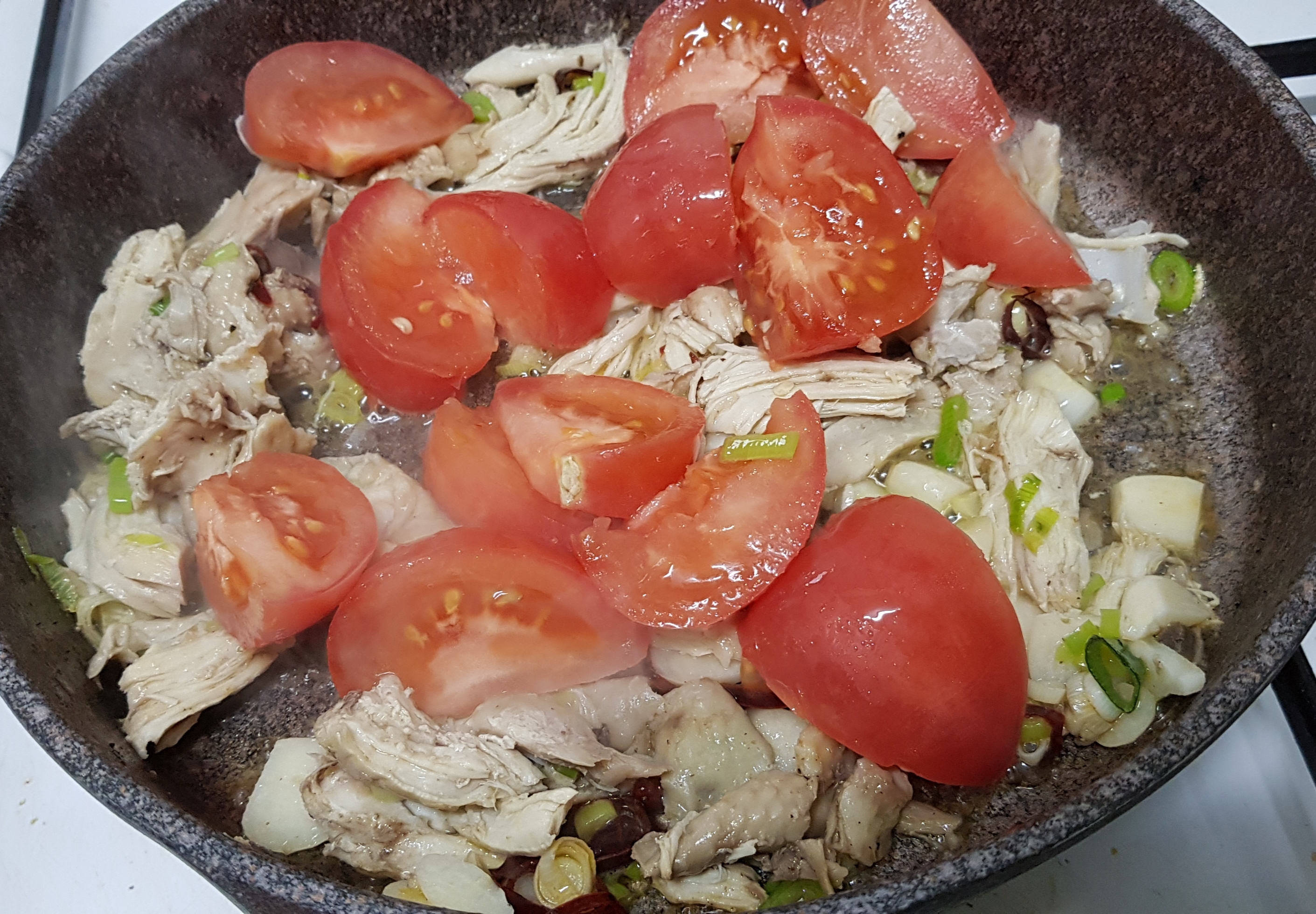 도마토 먼저 넣고 익힘니다