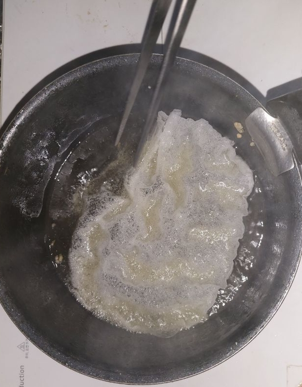 라이스페이퍼를 튀겨서 바로 봉지에넣고 살짝 부셔요
