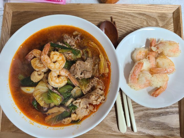 아들이 좋아하는 고기짬뽕을 끓였어요.