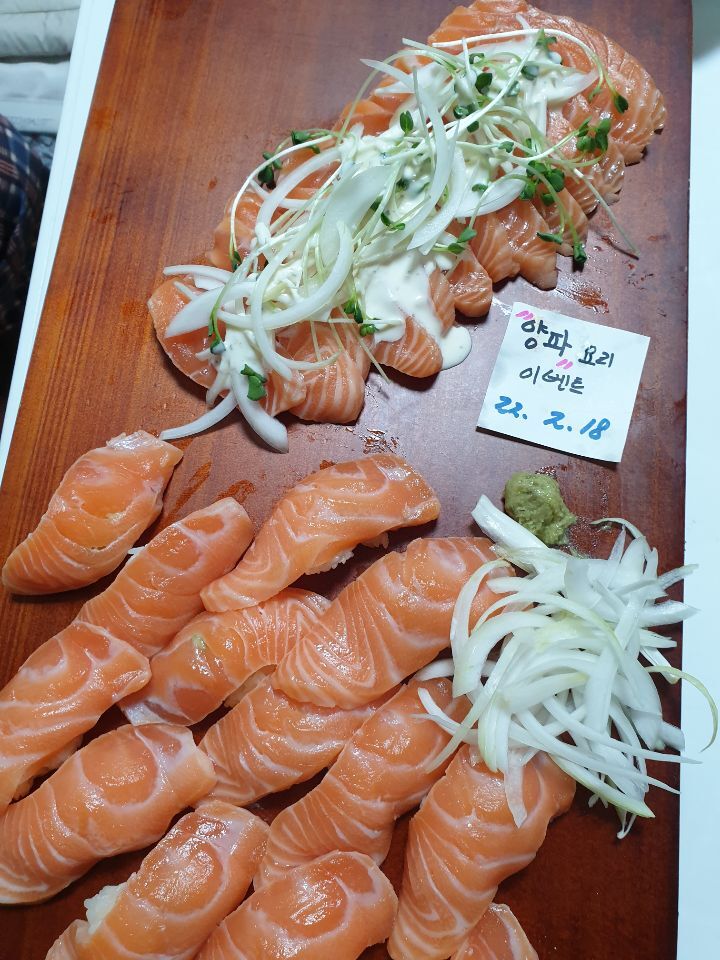 작성자박준석(경기고양) 작성시간 22.02.18 연어회, 연어초밥 맛있겠네요