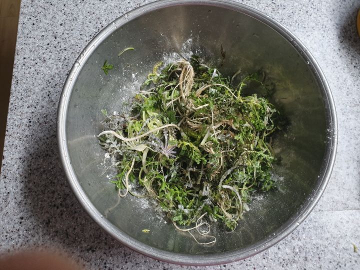 냉이, 부침가루, 포도씨유