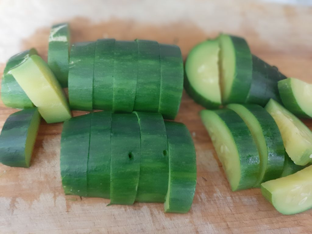 도마위에 얹어서 굵직하게 썰어줍니다.