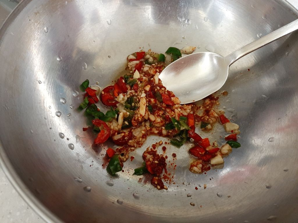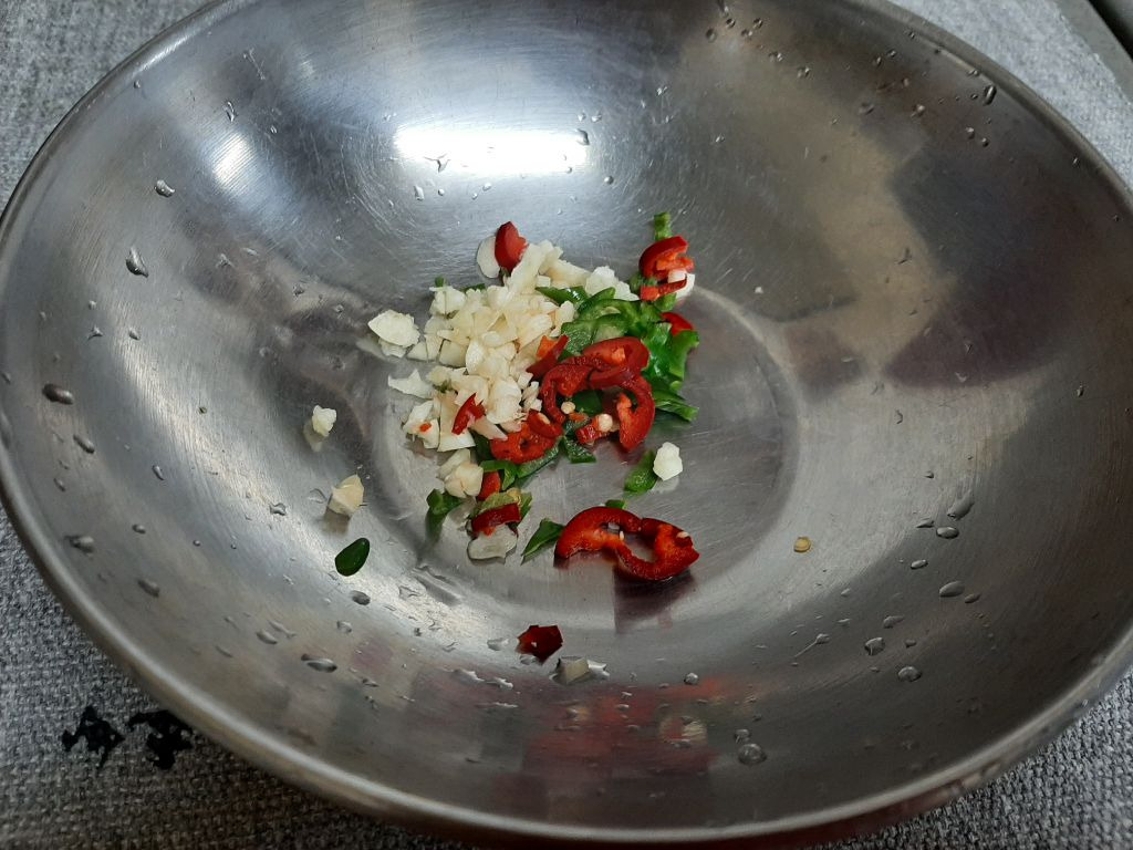 조선간장에 청양초.깨.홍고추.마늘다져서