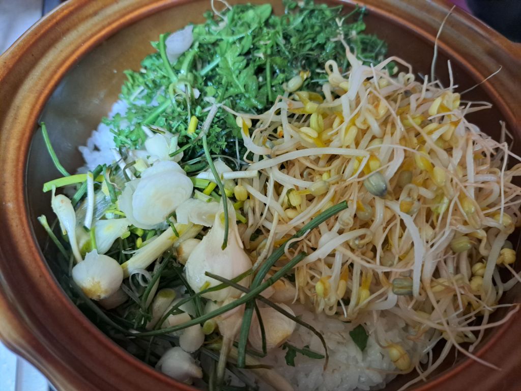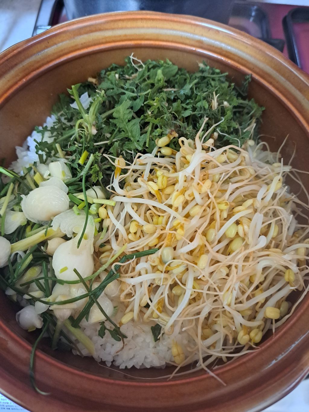 뜸들때쯤 숙주.냉이 올리고
