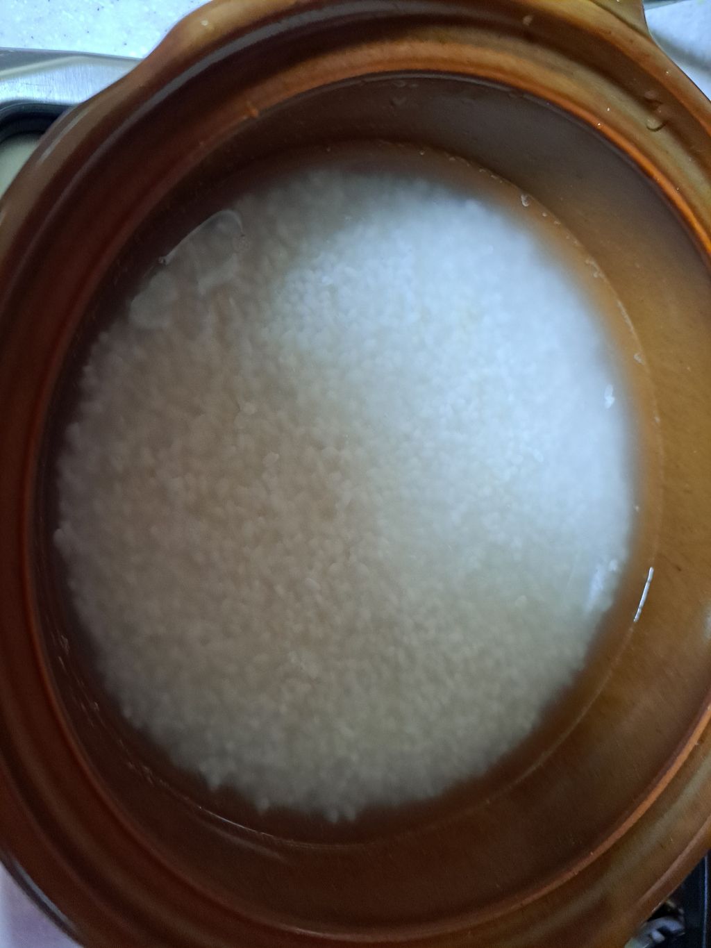 뚝배기에 쌀 앉혀서 물이 자작해