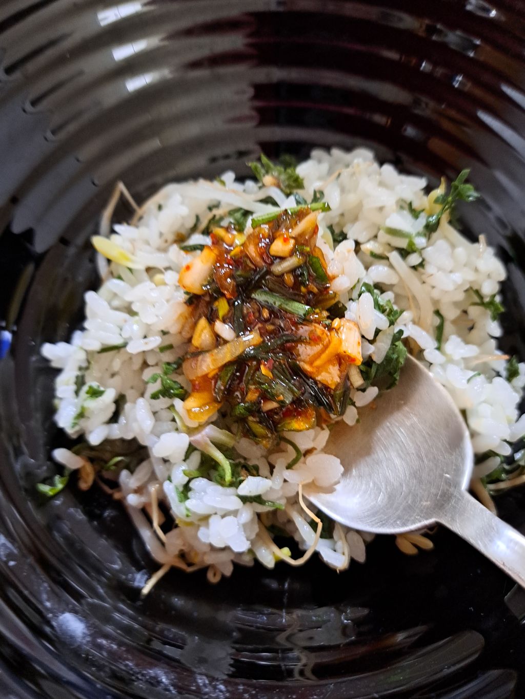 하다가 만들어본 숙주나물 밥입니다.