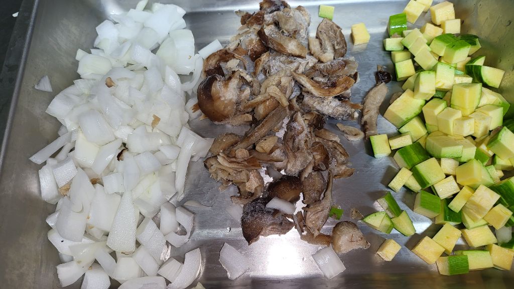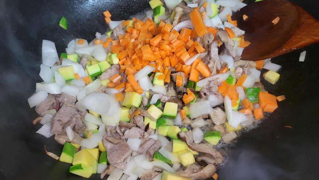 참송이와 양파 호박 당근을 넣고 볶았습니다.