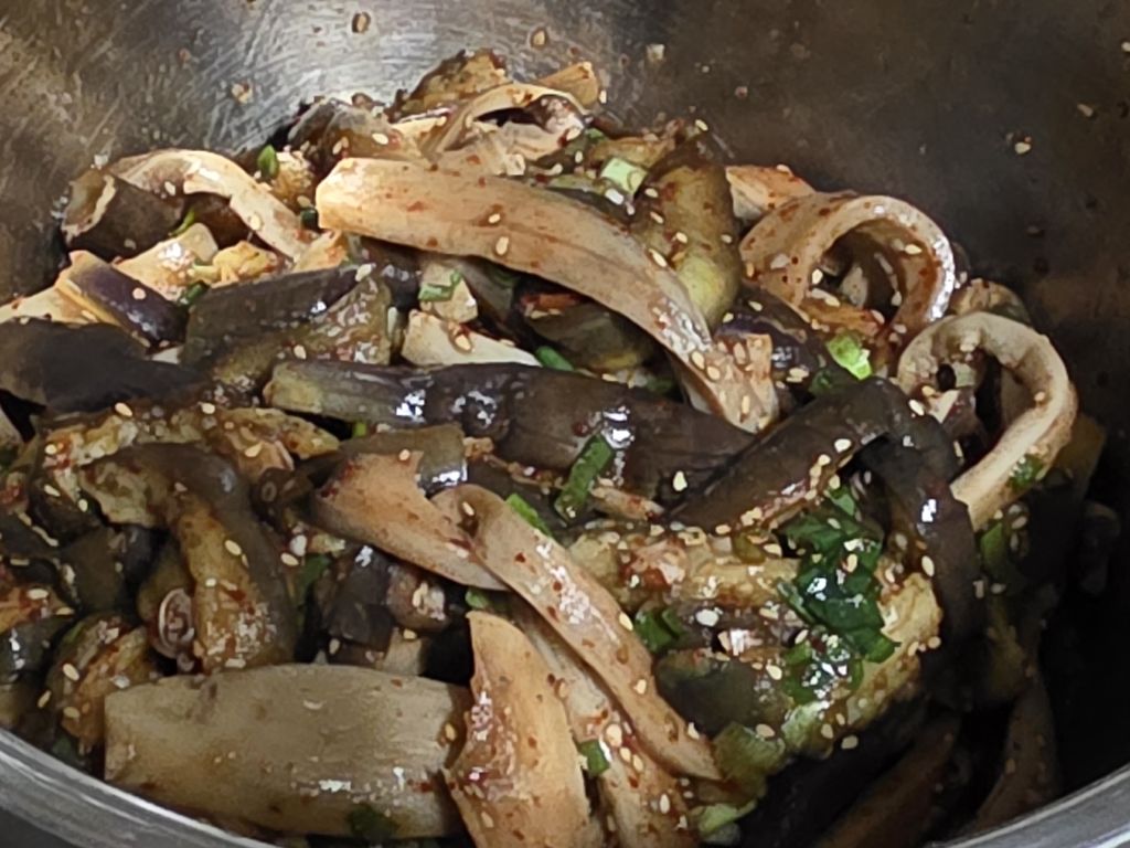 어릴 적 먹었던 가지무침 맛이 떠오르는 맛입니다.