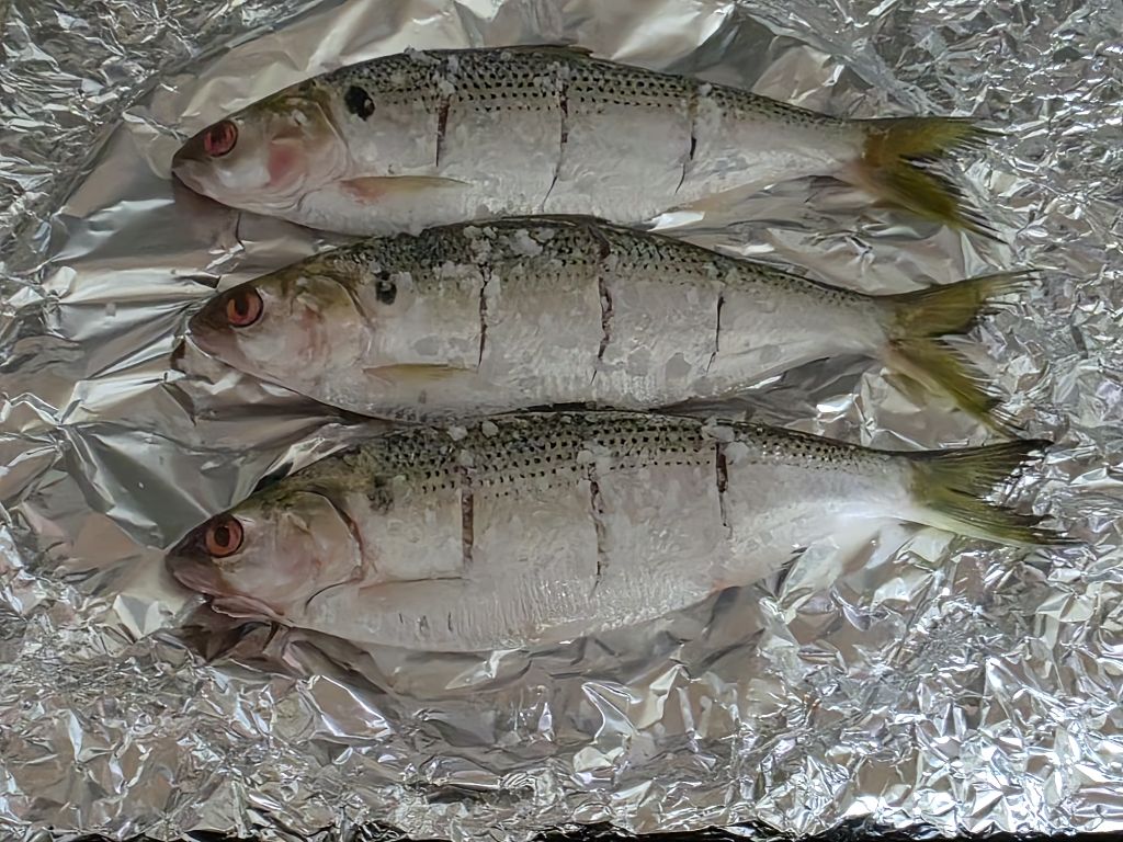 비늘, 아가미 손질하고 씻어서 칼집내고 굵은소금을 칼집에 넣고.....